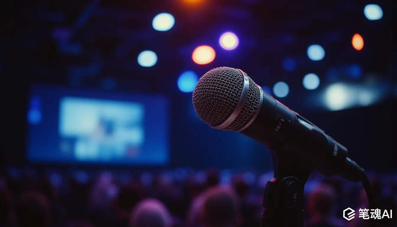 舞台上麦克风的照片,背景模糊,代表企业培训或专业发展的公共演讲和沟通技巧。这张照片是使用佳能EOS R6相机以原始风格拍摄的。