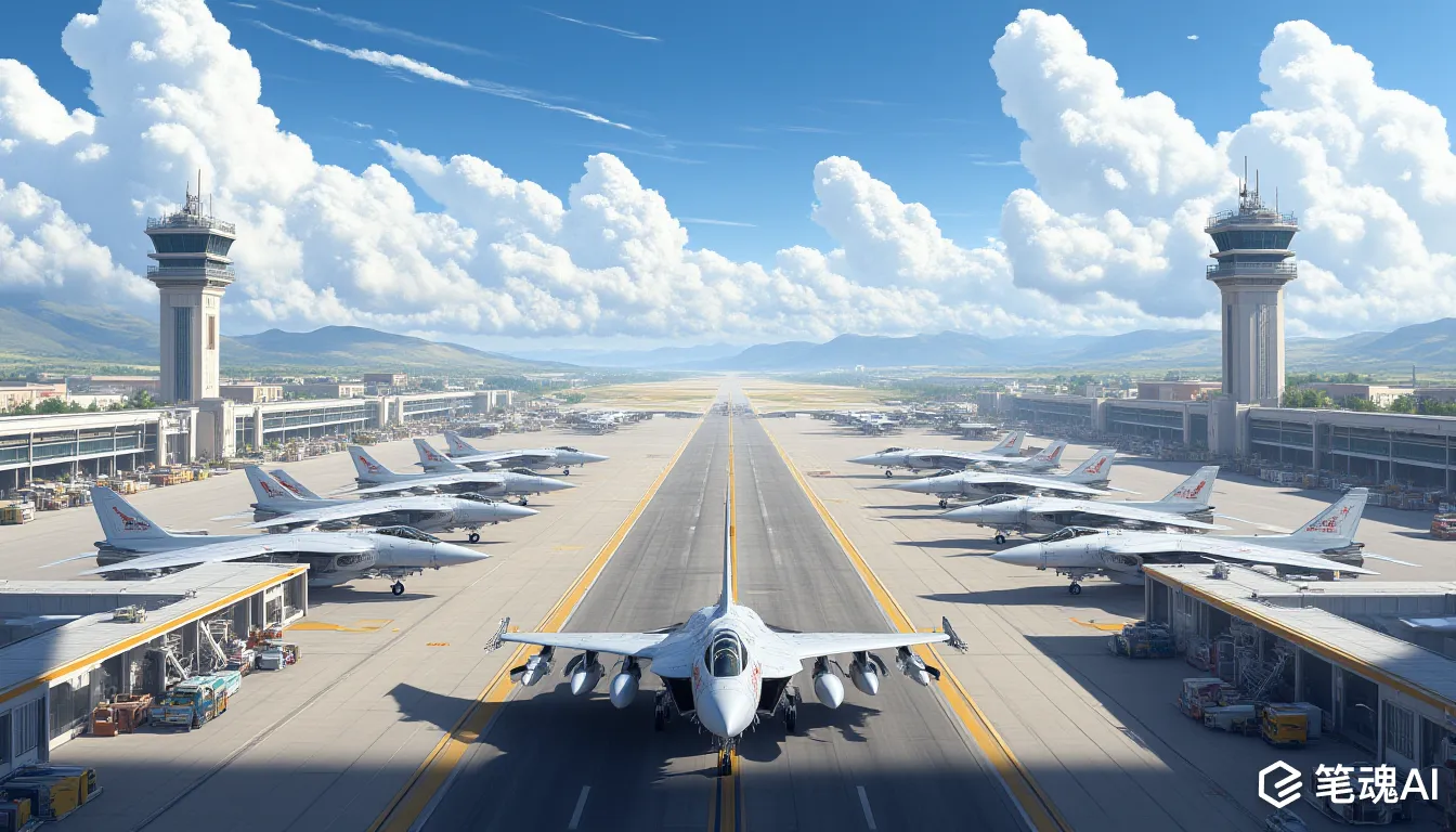 AI绘图作品:中国风特色军事机场景观设计是创作者情感深邃的描绘者在2024年12月14日 18:42通过hanvision 4模型生成的智能推荐风格作品,本图片参数如下:长宽比:16:9,尺寸:1344x768,格式:png;您可以通过笔魂Al绘画一键生成同款图片,也可直接免费下载使用。