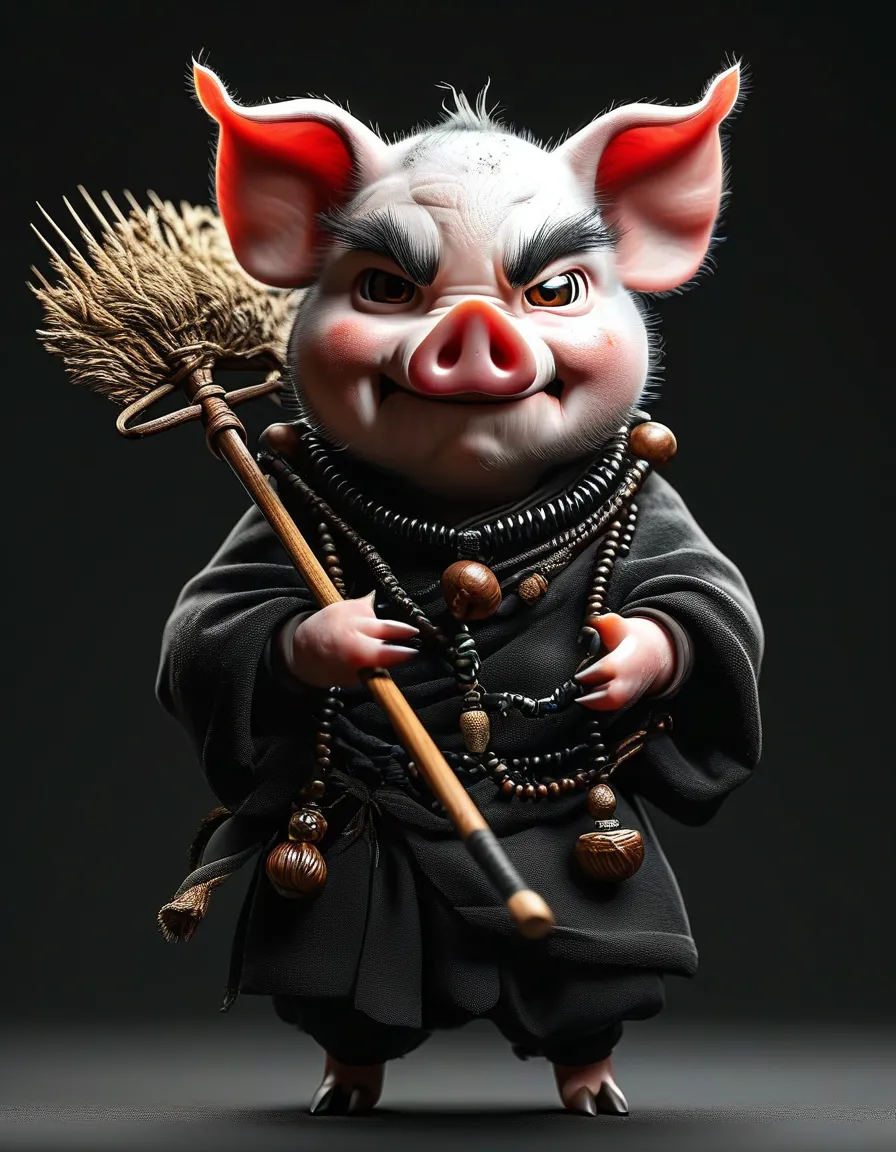 AI绘图作品:凶狠小猪角色设计图,黑色藏服九齿钉耙是创作者色彩丰富的实现师在2024年10月08日 17:33通过hanvision 4模型生成的智能推荐风格作品,本图片参数如下:长宽比:3:4,尺寸:896x1152,格式:png;您可以通过笔魂Al绘画一键生成同款图片,也可直接免费下载使用。