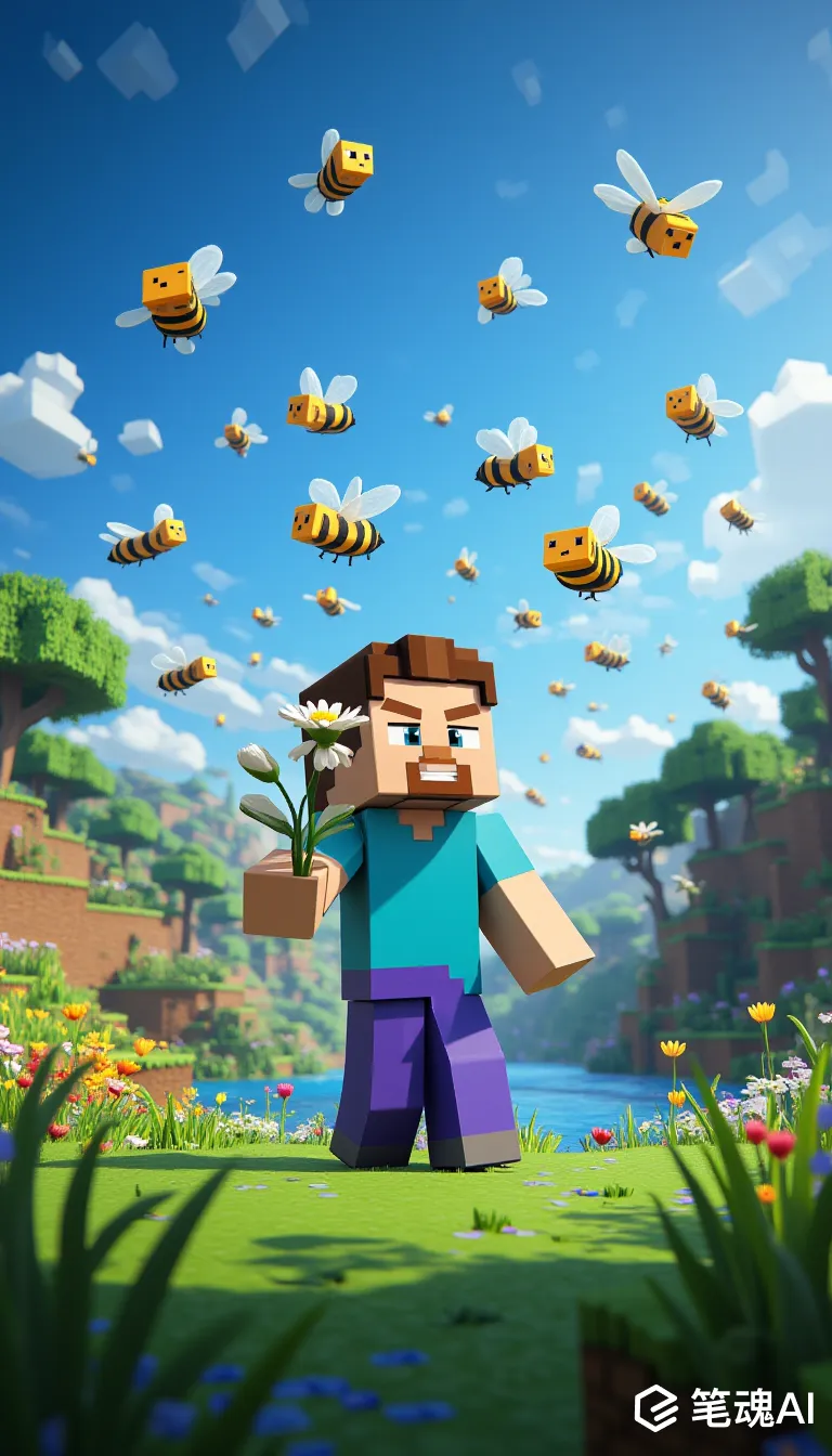 AI绘图作品:我的世界史蒂夫方块蜜蜂花卉草原是创作者星河漫步的编织者在2025年04月07日 21:14通过hanvision 4模型生成的智能推荐风格作品,本图片参数如下:长宽比:9:16,尺寸:768x1344,格式:png;您可以通过笔魂Al绘画一键生成同款图片,也可直接免费下载使用。
