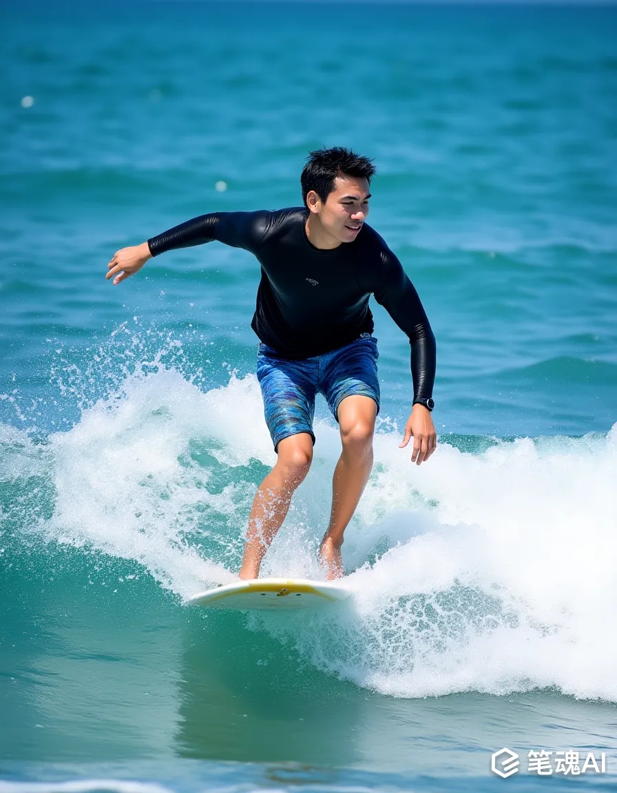 AI绘图作品:亚洲男子冲浪白板动感摄影是创作者星河漫步的编织者在2025年04月23日 15:19通过hanvision 4模型生成的智能推荐风格作品,本图片参数如下:长宽比:3:4,尺寸:896x1152,格式:png;您可以通过笔魂Al绘画一键生成同款图片,也可直接免费下载使用。