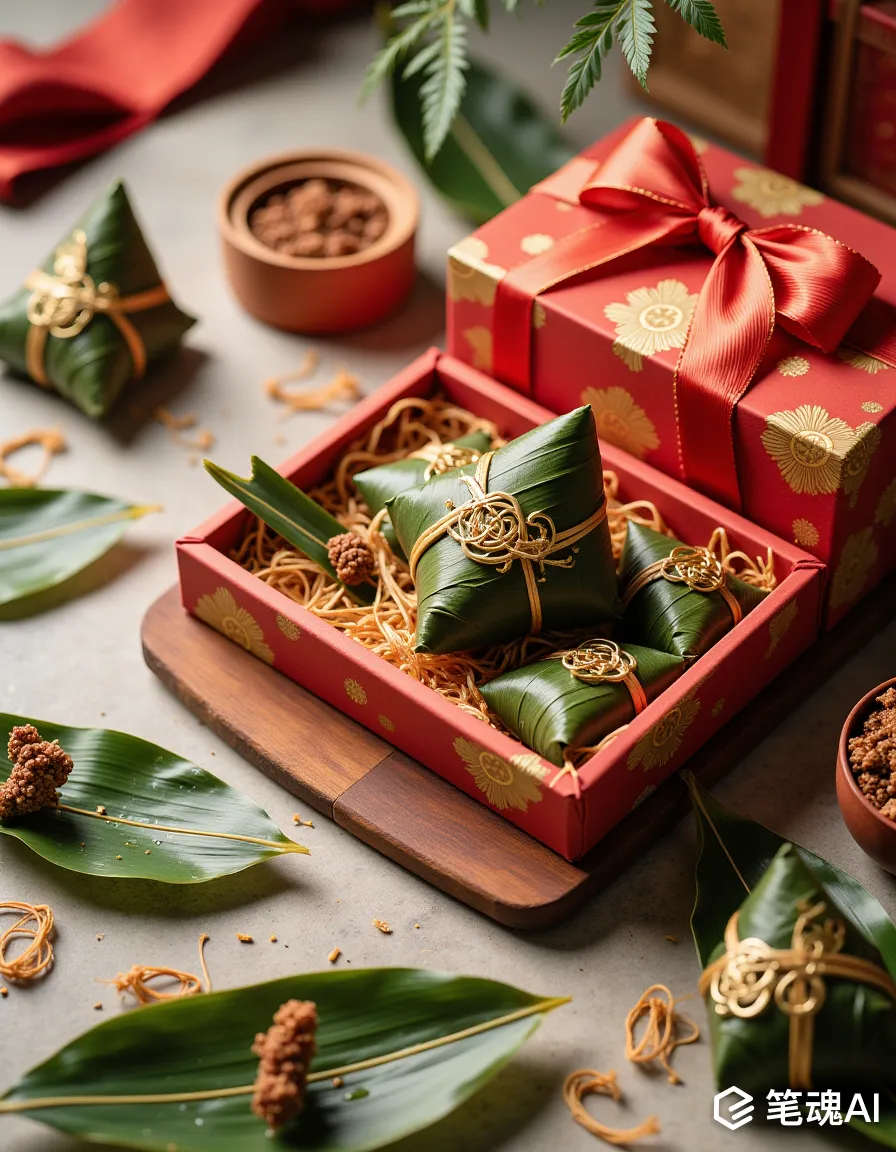 AI绘图作品:红色礼盒装粽子绿色叶子点缀节日气氛是创作者设计之力的守护者在2025年05月13日 18:12通过Hanvision 4模型生成的风格作品,本图片参数如下:长宽比:3:4,尺寸:896x1152,格式:png;您可以通过笔魂Al绘画一键生成同款图片,也可直接免费下载使用。